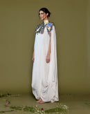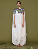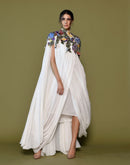 This stunning piece features a flowing silhouette in pristine white, meticulously draped for a luxurious and flattering fit. The focal point is the breathtaking