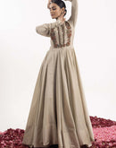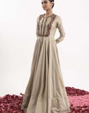 Anarkali in beige cotton silk, meticulously embroidered on both front and back Fabric: Cotton Silk  Embroidery details: Zardozi and applique embroidery Set of: 1 Colour: Beige Delivery time: 3-4 weeks...