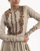 Anarkali in beige cotton silk, meticulously embroidered on both front and back