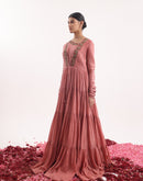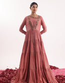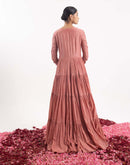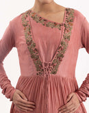 Elegant one-piece angrakha set in peach cotton silk, adorned with intricate front embroidery