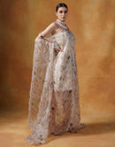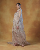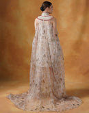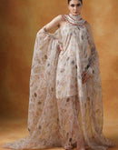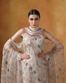 A printed kaftaan with beautifully embroidered high neck and sleeve cuffs. It has a similarly printed short slip in silk inside.  Fabric: Cotton & organza silk  Embroidery details: Zardozi embroidery...