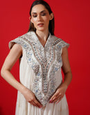 cotton silk & cotton dress enhance with embroidery neckline  floor-length that is embroidered around the neck