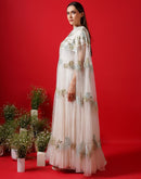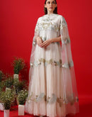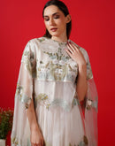 Organza silk kaftan & cotton inner dress enhance with embroidery neckline short-length that is embroidered around the neck Fabric: cotton & organza silk Embroidery details: silk thread & zardozi work Set...