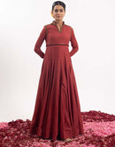 Exquisite one-piece anarkali dress in wine-colored cotton silk fabric.