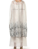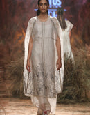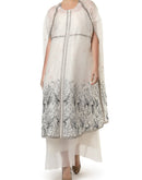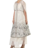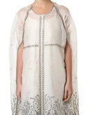 Ivory paneled cape sleeves embroidered linen silk Dress with organza long slip Dress.