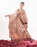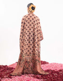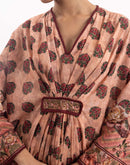 One-piece ensemble: a peach printed cotton silk kaftan, radiating a blend of comfort and style.