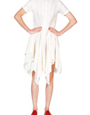 Featuring an ivory front opening paneled asymmetric shirt dress.Color: IvoryFabric: Cotton SilkCare Instructions: Dry Clean Only.