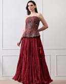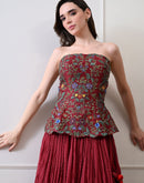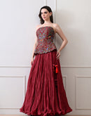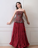 Merlot bloom maroon corset Set