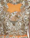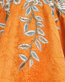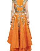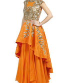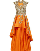 Sunset orange asymmetric peplum floor-length Gown embellished with zari & sequins.