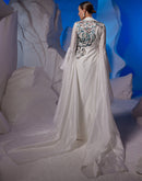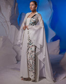 Charming ivory cotton silk dress adorned with vibrant silk thread big floral motif embroidery, elegantly enhanced with trail sleeves.