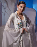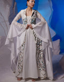 Cotton silk dress elegantly enhanced with trail sleeves