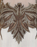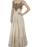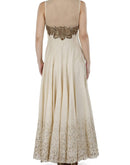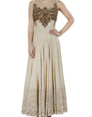 Beige floor-length Cotton Silk Gown detailed with zari embroidery & block printing.