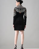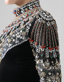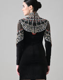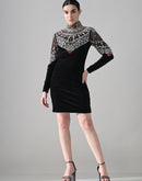 Black High-Neck Mini Dress with Hand-Embroidered Jeweled Yoke