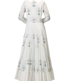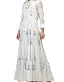 Featuring an ivory block printed tiered cotton silk dress.Color: IvoryFabric: Cotton SilkCare Instructions: Dry Clean Only.
