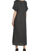 Featuring a Black collared, front button-down ankle-length Dress with waist flaps & side-slit detailing.Color: BlackFabric: Linen CottonCare Instructions: Dry Clean Only.