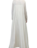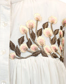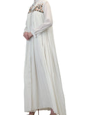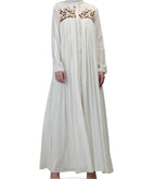 Featuring an ivory yoke embroidered kalidar front-opening long cotton silk dress
