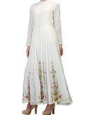 Featuring an ivory front-opening mandarin collar paneled cotton dress embroidered in vibrant silk yarn.Color: IvoryFabric: Cotton Care Instructions: Dry Clean Only.