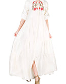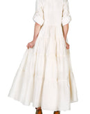 Featuring an ivory front-opening tiered shirt dress with silk yarn, zari, sequins & bead embroidery detailing.Color: IvoryFabric: Cotton SilkCare Instructions: Dry Clean Only.