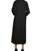Featuring a Black high buttoned mandarin-collar Dress with front button-down & roll-up sleeves detailing.