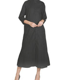 Featuring a Black high buttoned mandarin-collar Dress with front button-down & roll-up sleeves detailing.Color: BlackFabric: Linen CottonCare Instructions: Dry Clean Only.