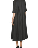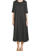 Featuring a Black round neck inverted pleats calf-length Dress.Color: BlackFabric: Linen CottonCare Instructions: Dry Clean Only.