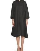 Featuring a Black mandarin collared front button-down Dress.Color: BlackFabric: Linen CottonCare Instructions: Dry Clean Only.