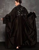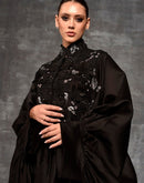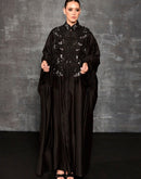 Chic black cotton silk kaftan featuring delicate silk thread and appliqué work