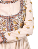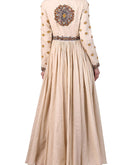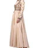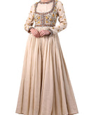 Ivory floor-length choli style Cotton Silk Kurta embroidered floral motifs of silk yarn & zari highlighted with sequins.