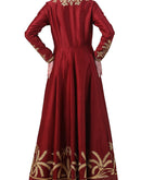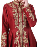 Maroon fit & flare kalidar Cotton Silk Kurta embelllished in silk & zari yarn.