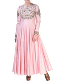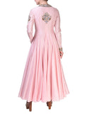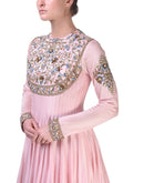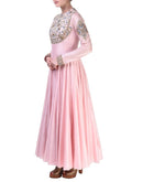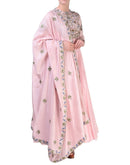Featuring a pale pink paneled anarkali kurta & dupatta with silk yarn, zari, sequins & beads embroidery.