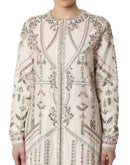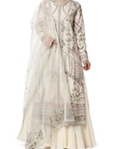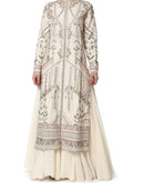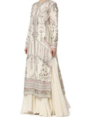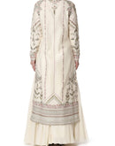 Ivory rib chanderi embroidered front open kurta with slip dress and embroidered organza dupatta
