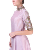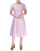 Featuring a lavender high-collared Kurta & dupatta with silk yarn, sequins, beads & dabka embroidery.