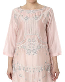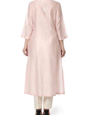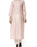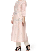 Pink chanderi silk kurta with floral embroidery along with cigarette pants