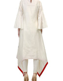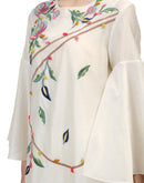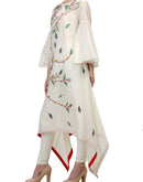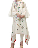 Featuring an ivory floral embroidered trumpet sleeves cotton silk kurta.