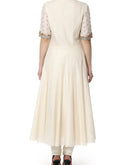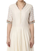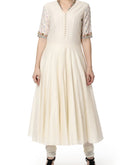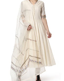 Ivory rib chanderi silk fit and flare kurta with embroidered neck and sleeves along with embroidered organza dupatta