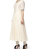 Ivory rib chanderi silk fit and flare kurta with embroidered neck and sleeves along with embroidered organza dupatta Color: IvoryFabric: Rib Chanderi SilkCare Instructions: Dry Clean Only