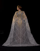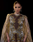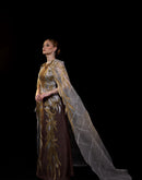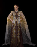 Embroidered Brown Gown with Sheer Cape – samantchauhan