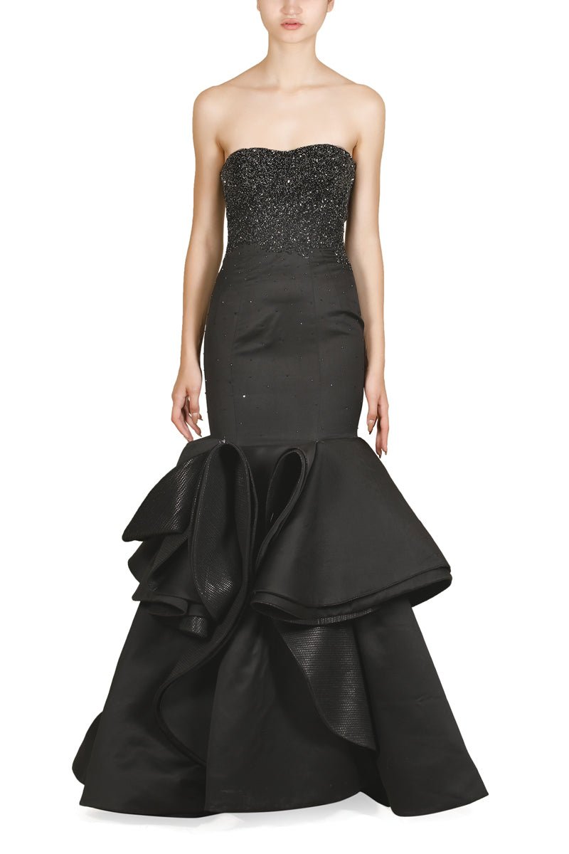 Black bustier mermaid chanderi gown embroidered in sequins, beads & zari.Color: BlackFabric: ChanderiCare Instructions: Dry Clean Only.
