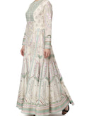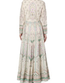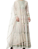 Off white embroidered rib chanderi silk front open kalidar dress with embroidered organza dupatta