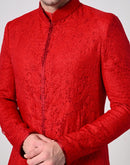 Indo-Western sherwani detailed red texture embroidery