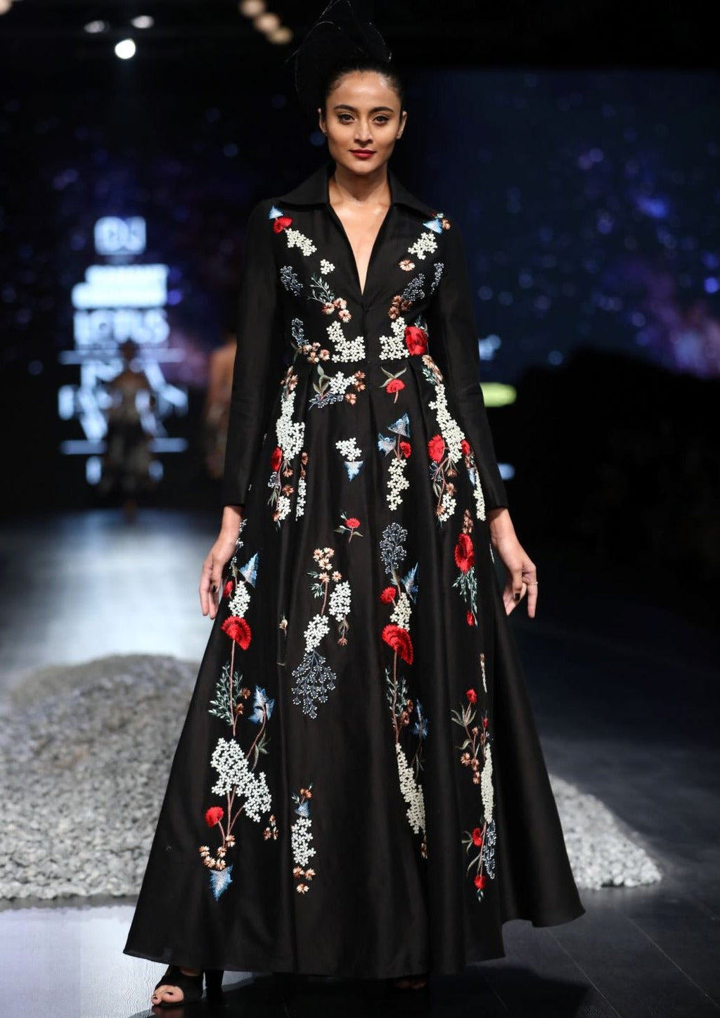 Silk thread & stone floral embroidery gown