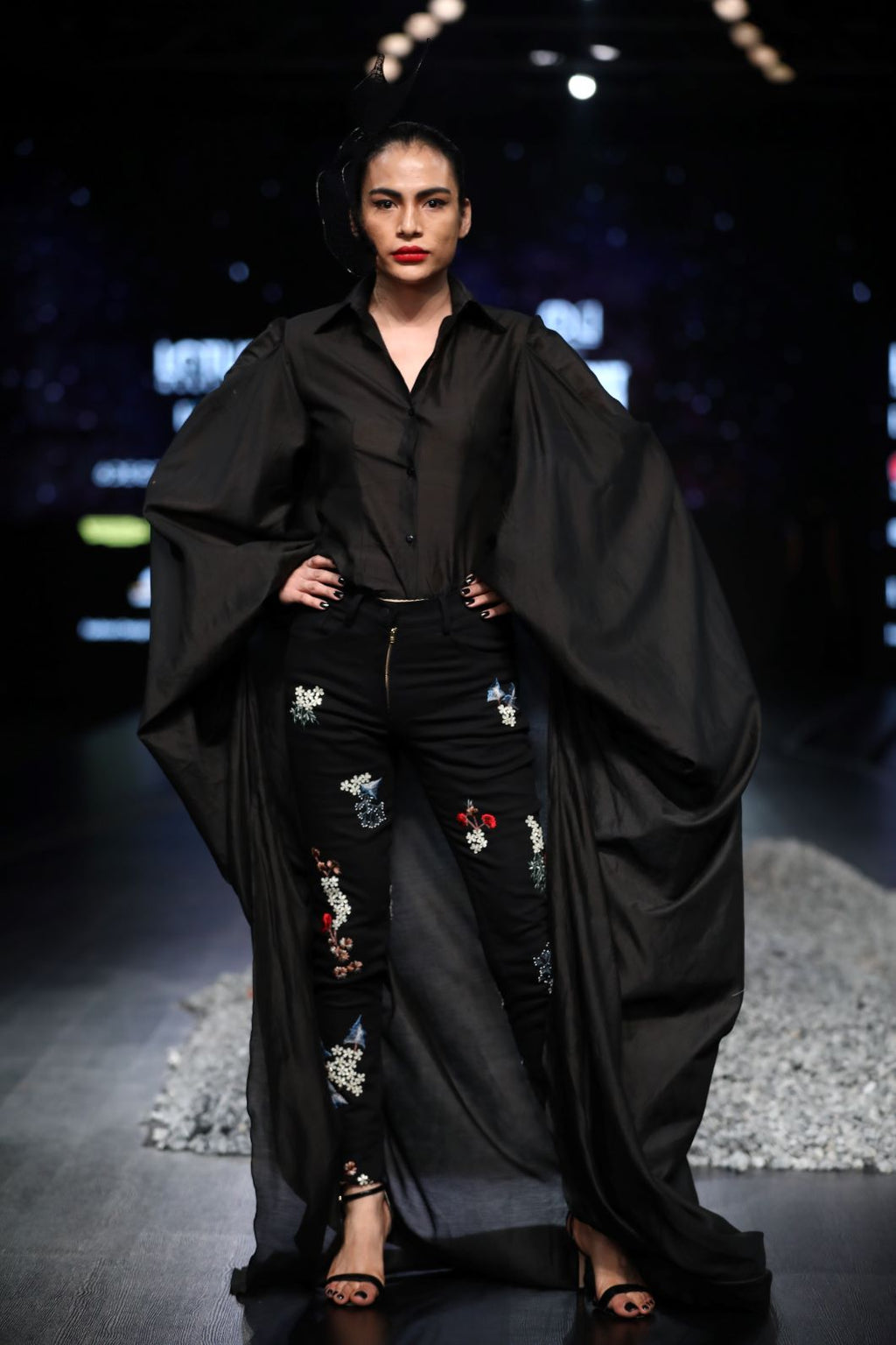 Silk thread embroidery pant along with black shirt with back trail