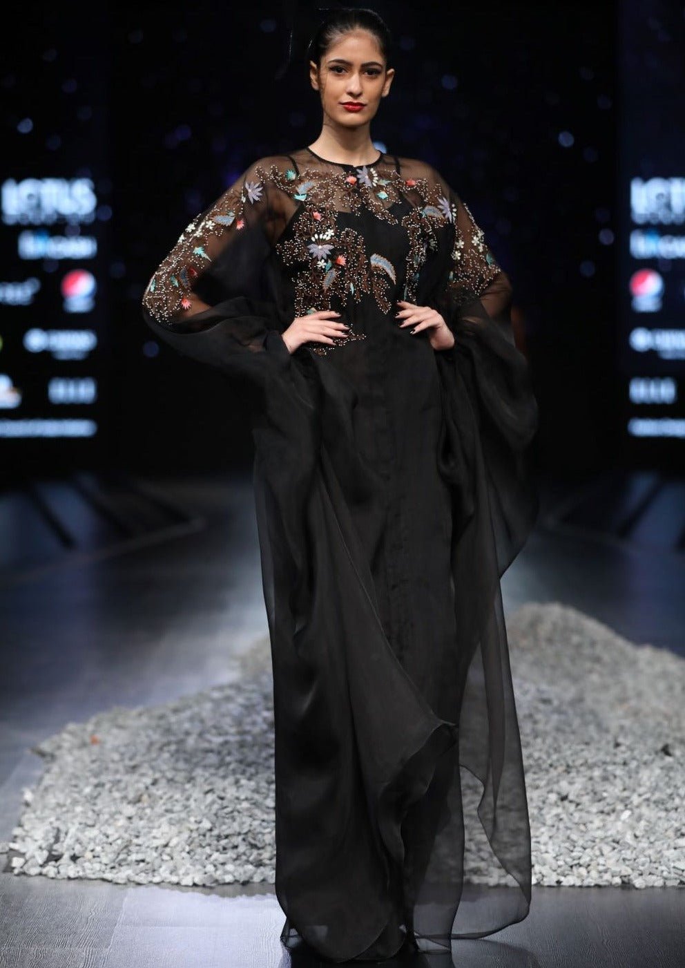 Color: Black Fabric: Organza silk Care Instructions: Dry Clean Only.