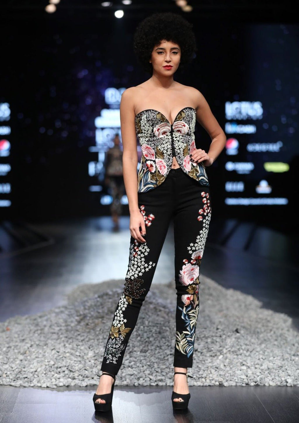 Silk thread floral embroidery corset & denim pant