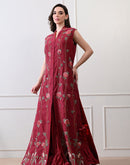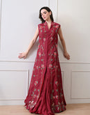 The Monarch Jacket Dress exudes regal sophistication, crafted in rich black fabric adorned with intricate embroidery. The tailored jacket silhouette flows seamlessly into a graceful skirt, creating a commanding yet elegant presence. Opulent detailing and refined.