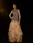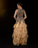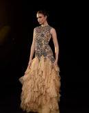 Gold Embroidered Gown with Layered Ruffle hem