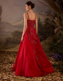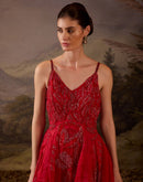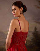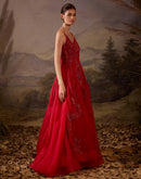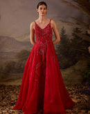 Radiate elegance in this crimson red gown, adorned with intricate sequin embroidery and a flowing silhouette—perfect for glamorous evenings and special occasions