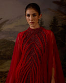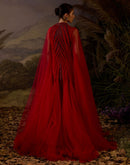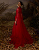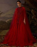 Ivory gown featuring pleating textured details, adorned with exquisite silk thread and zardozi embroidery