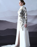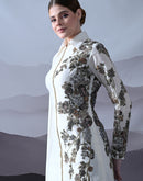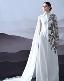 Ivory Gown with Asymmetrical Embroidery