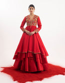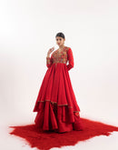 Radiant two-piece ensemble: a red embroidered anarkali crafted in luxurious cotton silk fabric, showcasing timeless elegance and intricate detailing. Fabric: Cotton silk Embroidery details: Zardozi embroidery Set of: 2 Color:...